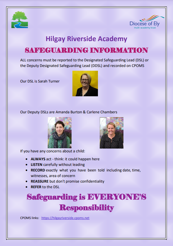 The Hilgay Riverside Academy understands the vital importance of safeguarding and child protection. The school follows the DEMAT safeguarding and child protection policy, which includes an appendix related specifically to our school.